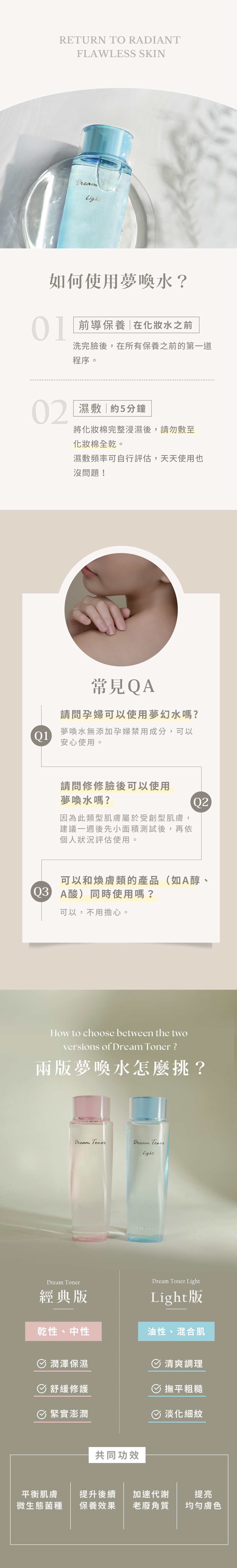 用法:以化妝棉或指腹取適量輕拍臉部及頸部肌膚,按摩至肌膚完全吸收為止。
