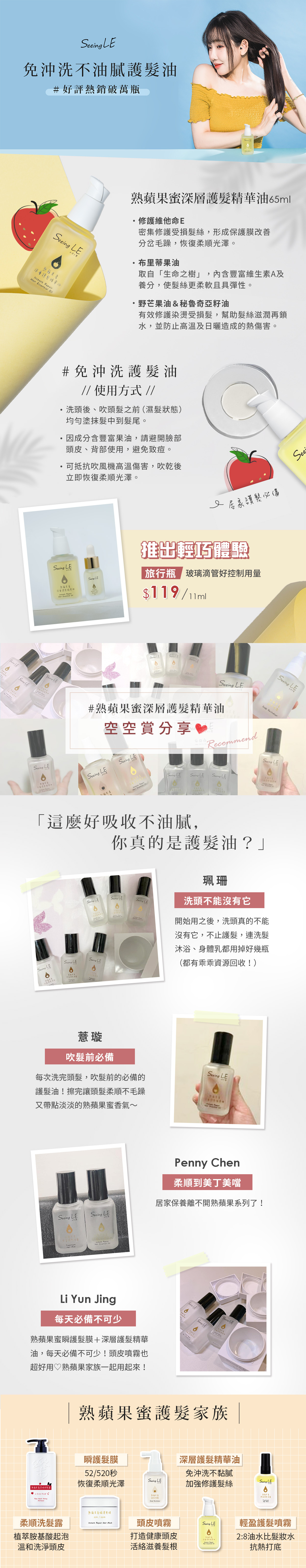 用法:吹頭髮前,均勻塗抹於髮中到髮尾