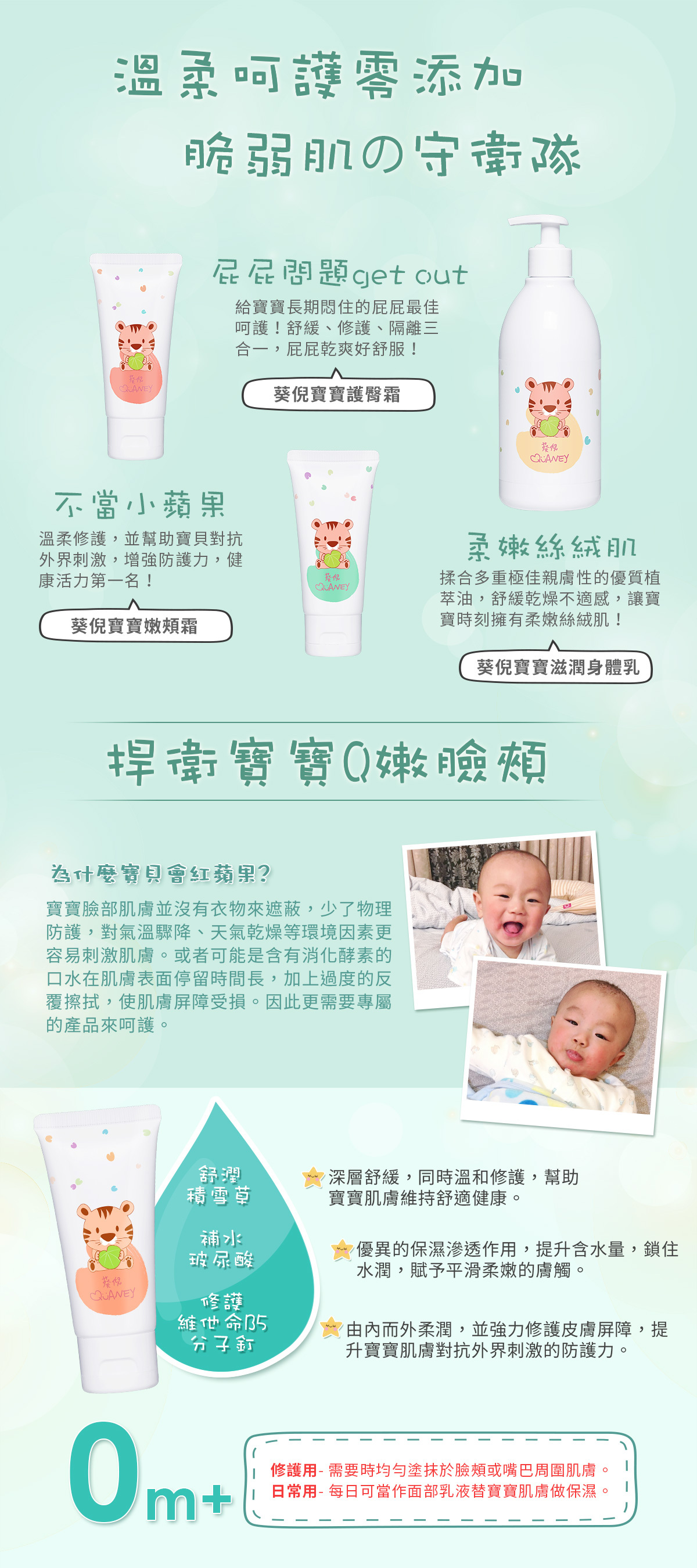 用法:(修護用)需要時均勻塗抹於臉頰或嘴巴周圍肌膚。(日常用)每日可當作面部乳液替寶寶肌膚做保濕。